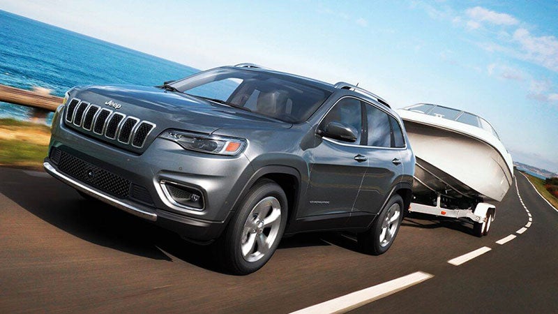 The Jeep Cherokee flaunts front-wheel or four-wheel drive, plus all-speed traction control, hill start assist, and trailer sway damping. What's more, it benefits from all-season tires and a terrain management system that help you adapt to a variety of surfaces. Meanwhile, the Trailhawk runs with exclusives such as an off-road suspension, red tow hooks, and surrounding skid plates.